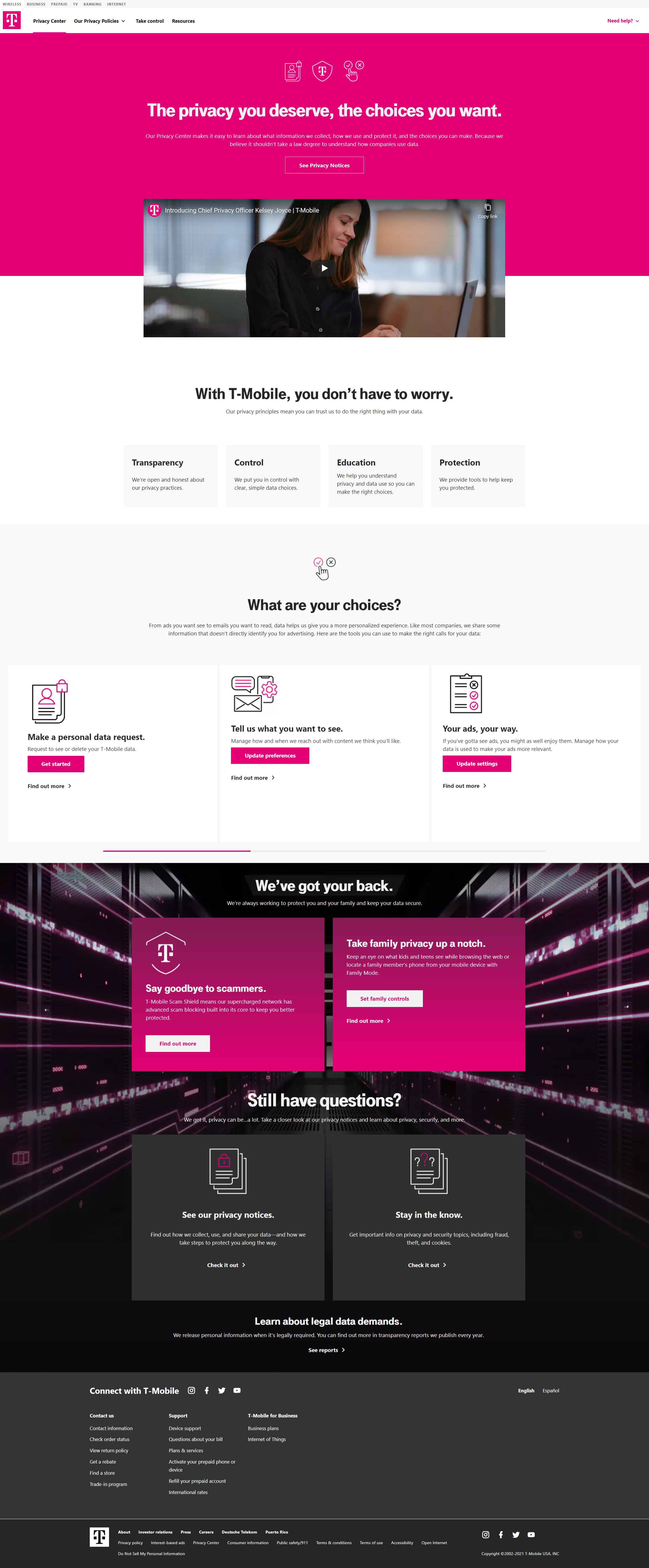 Concepted and wrote T-Mobile’s Privacy Center landing page.