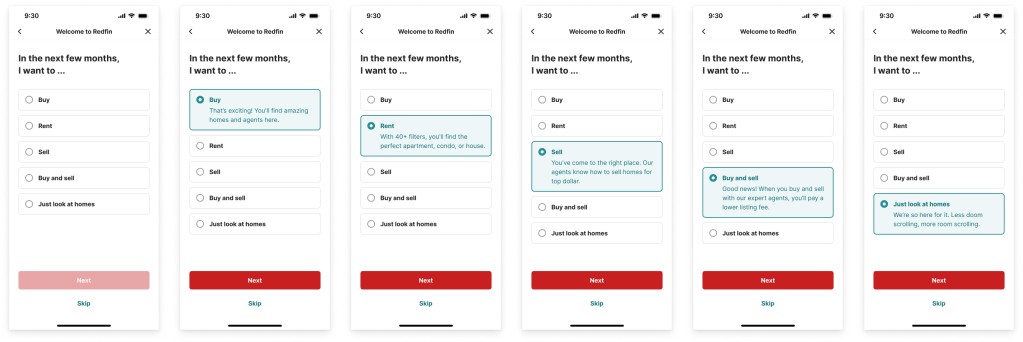 UX Examples Wrote UX copy for a breath of touch points across Redfin.com and the Redfin app. App onboarding experience Web onboarding experience Related